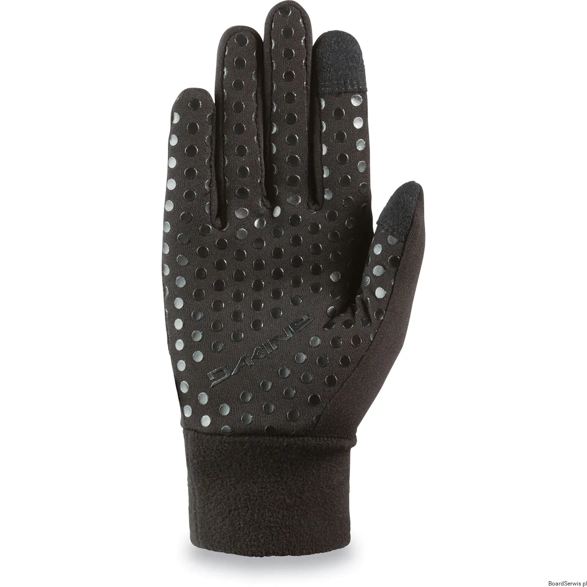Storm Liner Dakine to damskie rękawice z pięcioma palcami. Stworzone są ze stretchu i polaru, posiadają silikonowy grip po wewnętrznej stronie dłoni, który gwarantuje pewny chwyt. Palce wyposażone są w panele kompatybilne z ekranem dotykowym. Rękawice mogą służyć jako dodatkowa warstwa izolacyjna do grubych rękawic z membraną.